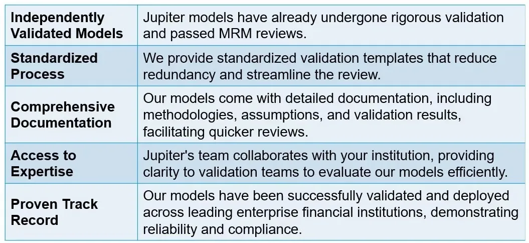 - Alignment with MRM and regulatory expectations