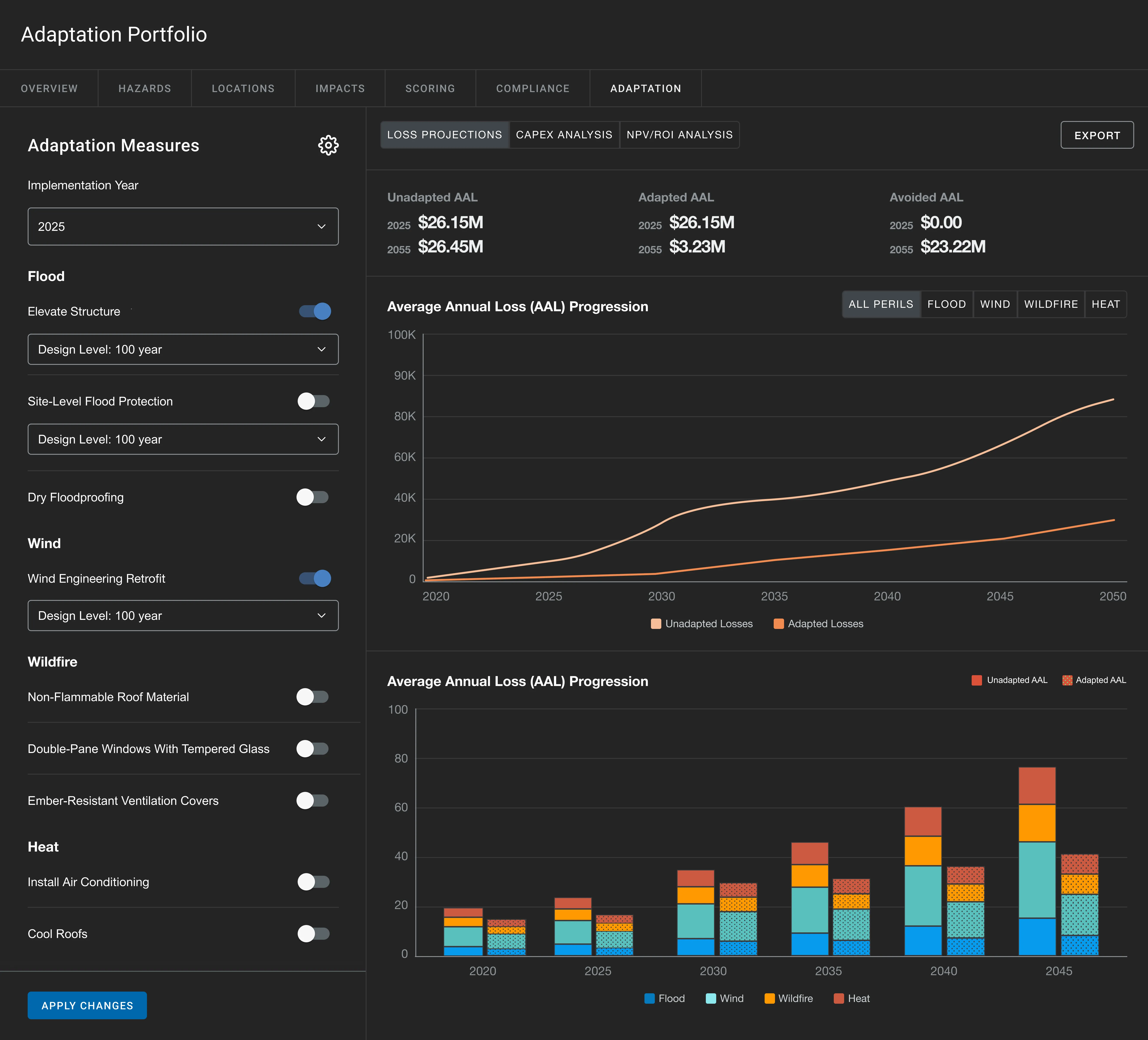 On paper, adaptation should be a natural next step. But in practice, even the most sophisticated firms struggle to operationalize it. Risk and ESG teams often lack the tools to simulate how specific adaptation strategies like floodwalls, AC upgrades, or wildfire retrofits affect losses, costs, or asset value. Meanwhile, investment teams need financial justification before committing capital, and consultants are too slow or expensive to keep pace with market cycles.