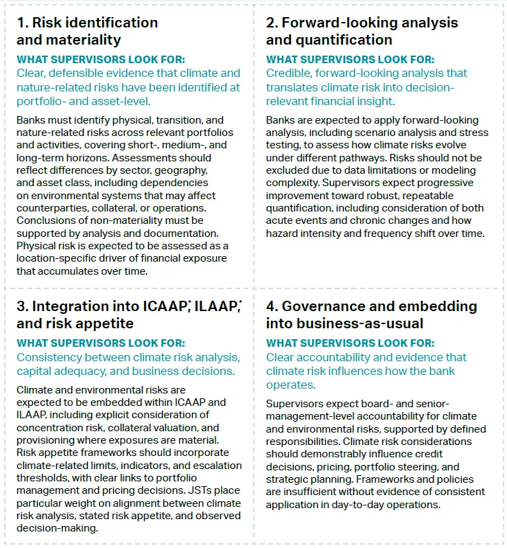 Taken together, these expectations signal a clear supervisory message: climate risk must function as a financial risk discipline, not a disclosure exercise.