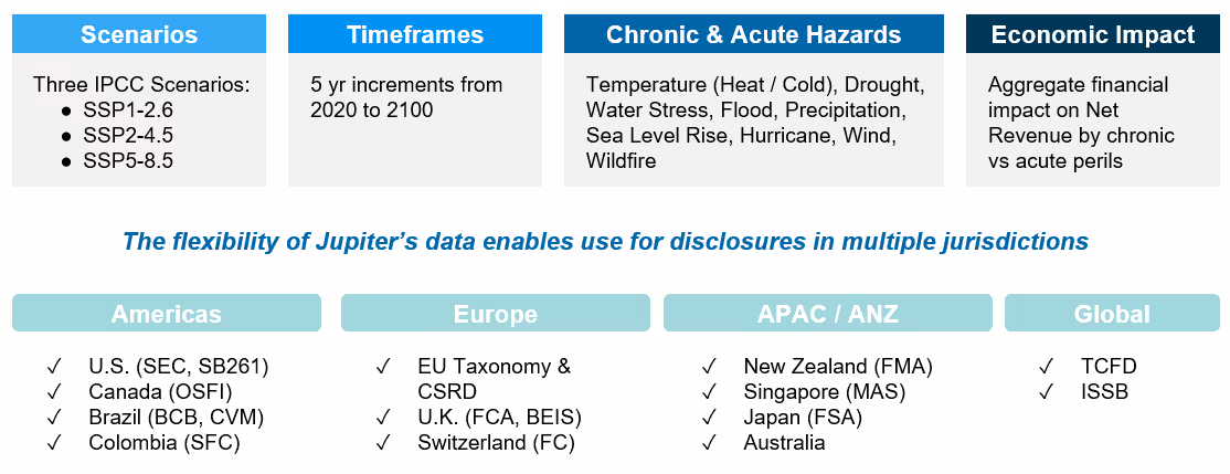As the world’s largest economies move towards formulation of jurisdiction-specific guidance prescribing how organizations must assess, disclose, and report financial and operational risk from climate change, data and methods have emerged that help your company prepare for the mandates to come. Our on-demand Jupiter webinar explains why.