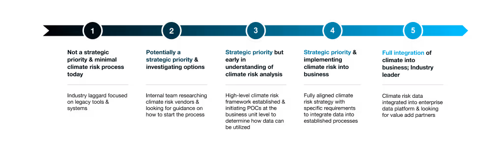 Only a select minority of companies—the most advanced—have a clear strategy for assessing climate risk and have taken the necessary steps to fully integrate their climate risk data into their broader enterprise business intelligence platforms.