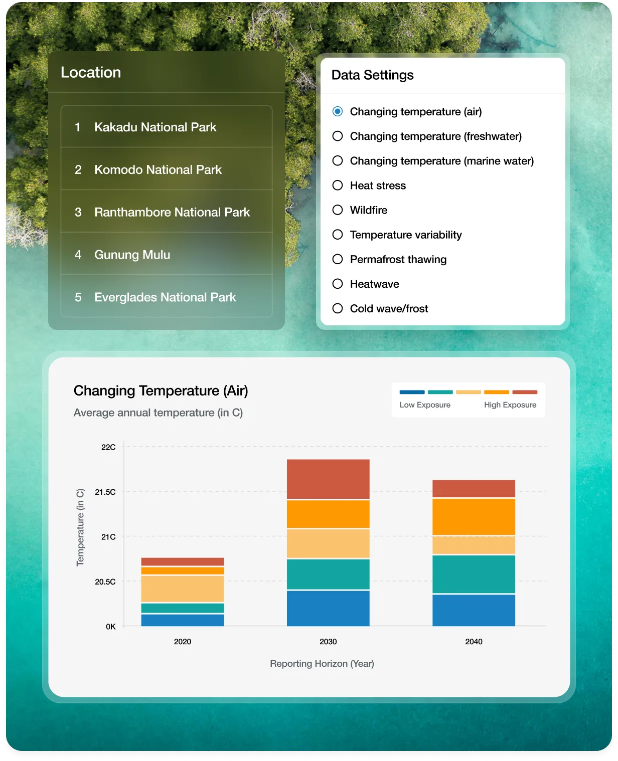 Screen acquisitions, loans, and insurance decisions with scenario-aligned insights into future risk, operational disruption, and insurability.